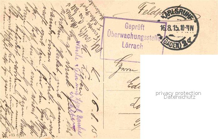 42712863 alte Postkarte Karlsruhe Baden Bernhardus Kirche postalisch gelaufen Feldpost Erhaltung siehe scans [WerneD78] KatCode: 11110008212000