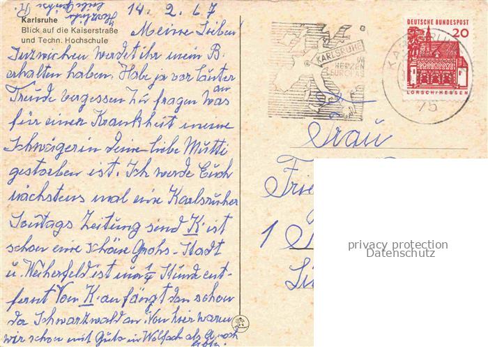 74104153 alte Postkarte KARLSRUHE Baden Blick auf die Kaiserstrasse und Technische Hochschule postalisch gelaufen Erhaltung siehe scans [FriedD77] KatCode: 11110008212000