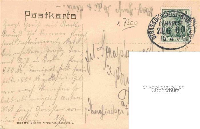 42842868 alte Postkarte Karlsruhe Baden Durlachertor Kirche postalisch gelaufen Bahnpost Erhaltung siehe scans [WerneD78] KatCode: 11110008212000