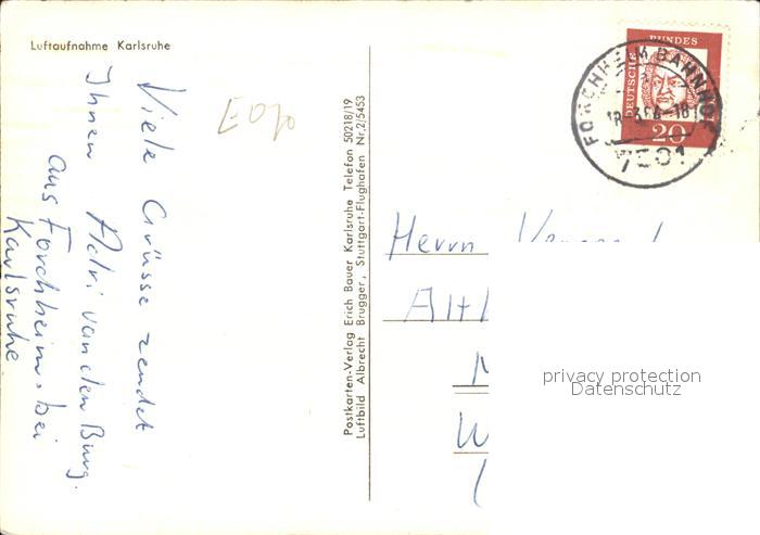 72923300 alte Postkarte Karlsruhe Baden Fliegeraufnahme postalisch gelaufen Erhaltung siehe scans [WerneD48] KatCode: 11110008212000