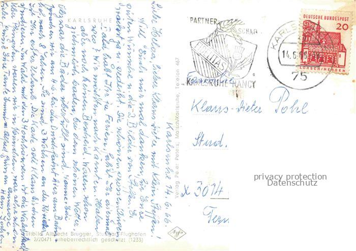 KARLSRUHE Baden Fliegeraufnahme postalisch gelaufen Erhaltung siehe scans [FriedD77] alte Postkarte Frie Katcode 11110008212000