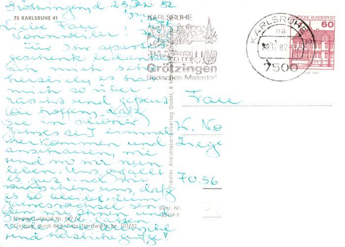 73877006 alte Postkarte Karlsruhe Baden Fliegeraufnahme postalisch gelaufen Erhaltung siehe scans [FriedD77] KatCode: 11110008212000