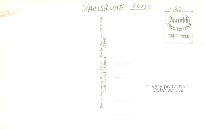 73761582 Karlsruhe Baden Fliegeraufnahme postalisch nicht gelaufen Erhaltung siehe scans [FriedD77] KatCode: 11110008212000