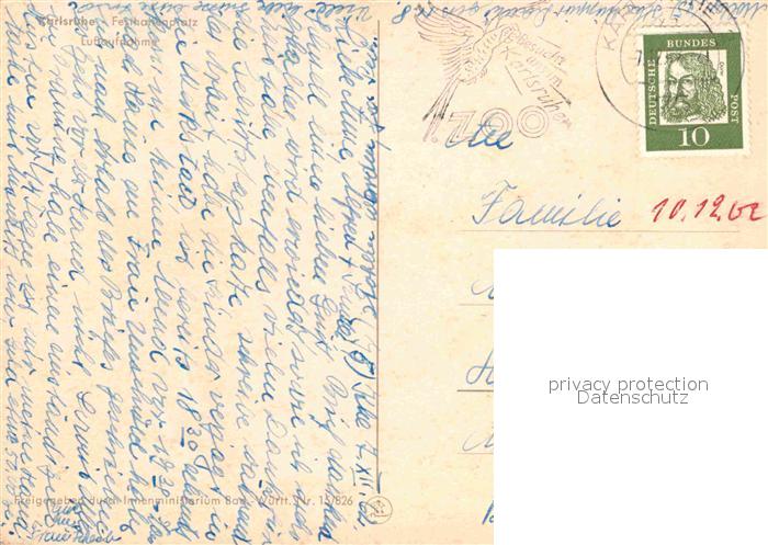 72850457 alte Postkarte Karlsruhe Baden Fliegeraufnahme Festhallenplatz postalisch gelaufen Erhaltung siehe scans [LiesaD40] KatCode: 11110008212000