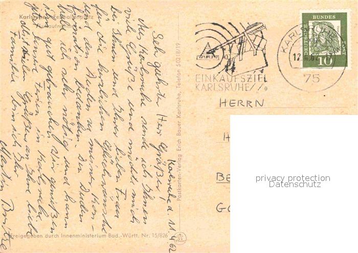 72668676 alte Postkarte Karlsruhe Baden Fliegeraufnahme Festhallenplatz postalisch gelaufen Erhaltung siehe scans [LiesaD40] KatCode: 11110008212000