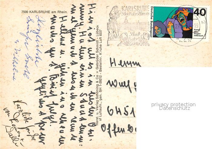 73056262 alte Postkarte Karlsruhe Baden Fliegeraufnahme mit Schloss postalisch gelaufen Erhaltung siehe scans [WerneD78] KatCode: 11110008212000