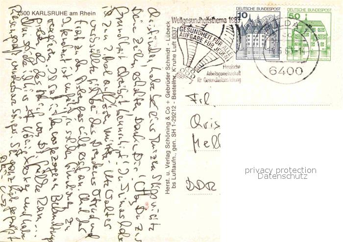 72760622 alte Postkarte Karlsruhe Baden Fliegeraufnahme mit Schloss postalisch gelaufen Erhaltung siehe scans [LiesaD40] KatCode: 11110008212000