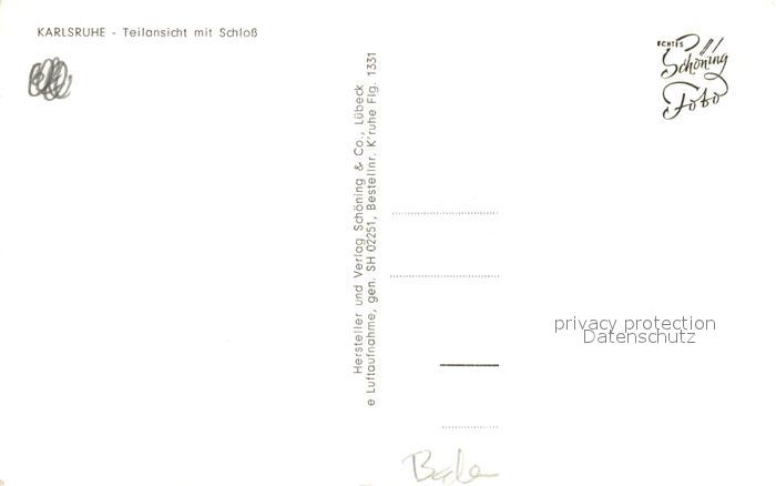 43504876 Karlsruhe Baden Fliegeraufnahme Schloss postalisch nicht gelaufen Erhaltung siehe scans [KathaD81] KatCode: 11110008212000