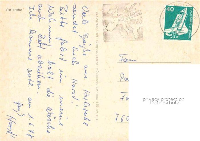 72738842 alte Postkarte Karlsruhe Baden Fliegeraufnahmen Ortspartien postalisch gelaufen Erhaltung siehe scans [LiesaD40] KatCode: 11110008212000