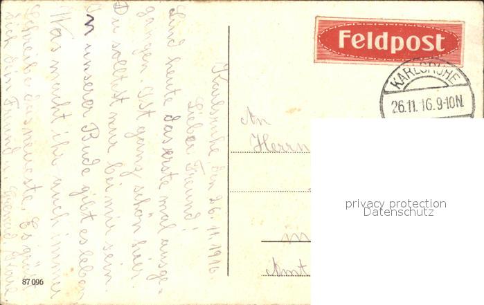 31722498 alte Postkarte Karlsruhe Baden Grenadier-Kaserne postalisch gelaufen Feldpost Erhaltung siehe scans KatCode: 11110008212000