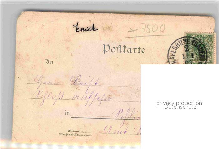 42845655 alte Postkarte Karlsruhe Baden Grossherzogl Schloss Marktplatz Rathhaus Festhalle postalisch gelaufen Erhaltung siehe scans [WerneD78] KatCode: 11110008212000