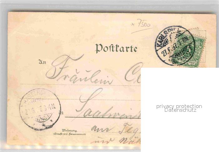 42845647 alte Postkarte Karlsruhe Baden Grossherzogl Schloss Marktplatz Rathhaus Hoftheater postalisch gelaufen Erhaltung siehe scans [WerneD78] KatCode: 11110008212000