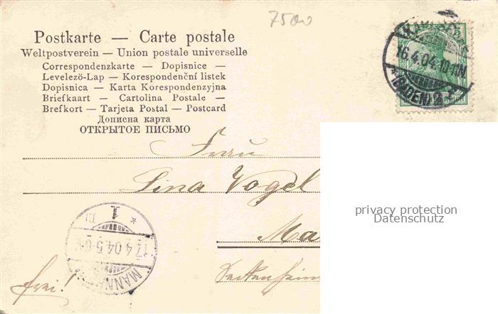 74120728 alte Postkarte KARLSRUHE Baden Hofapotheke mit Waldstrasse und Kaiserstrasse postalisch gelaufen Erhaltung siehe scans [FriedD77] KatCode: 11110008212000