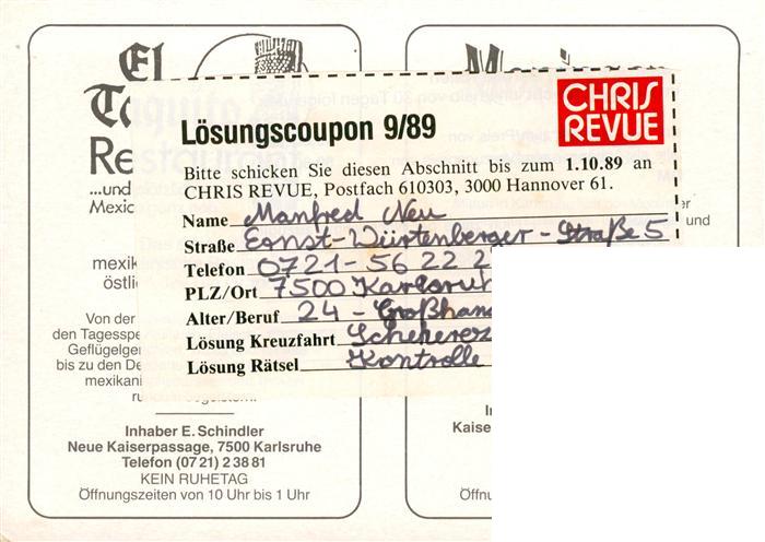 73882913 Karlsruhe Baden Hotel El Taquito Gastraeume Bar postalisch nicht gelaufen Werbekarte (keine Postkarte) Erhaltung siehe scans [WerneD78] KatCode: 11110008212000