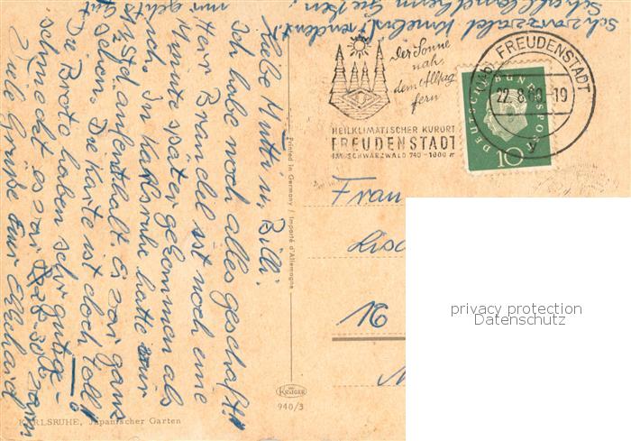 73771967 alte Postkarte Karlsruhe Baden Japanischer Garten postalisch gelaufen Erhaltung siehe scans [WerneD78] KatCode: 11110008212000