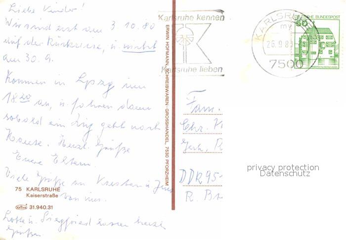 72654298 alte Postkarte Karlsruhe Baden Kaiserstrasse postalisch gelaufen Erhaltung siehe scans [WerneD78] KatCode: 11110008212000
