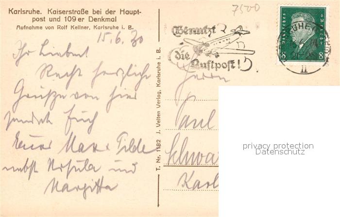 Karlsruhe Baden Kaiserstrasse Hauptpost 109er Denkmal