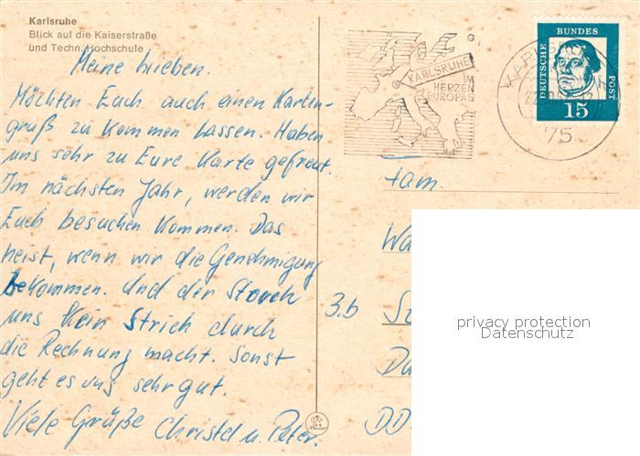 73029660 alte Postkarte Karlsruhe Baden Kaiserstrasse Technische Hochschule postalisch gelaufen Erhaltung siehe scans [PaolaD17] KatCode: 11110008212000
