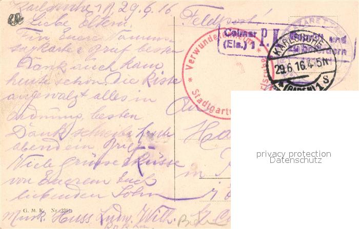 43505183 alte Postkarte Karlsruhe Baden Karl Friedrich Strasse postalisch gelaufen Feldpost – Stempel Erhaltung siehe scans [KathaD81] KatCode: 11110008212000