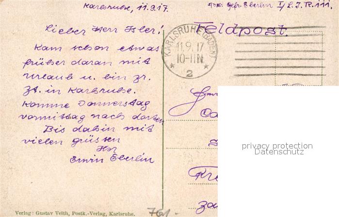 43132775 alte Postkarte Karlsruhe Baden Marktplatz postalisch gelaufen Feldpost Erhaltung siehe scans [KathaD81] KatCode: 11110008212000