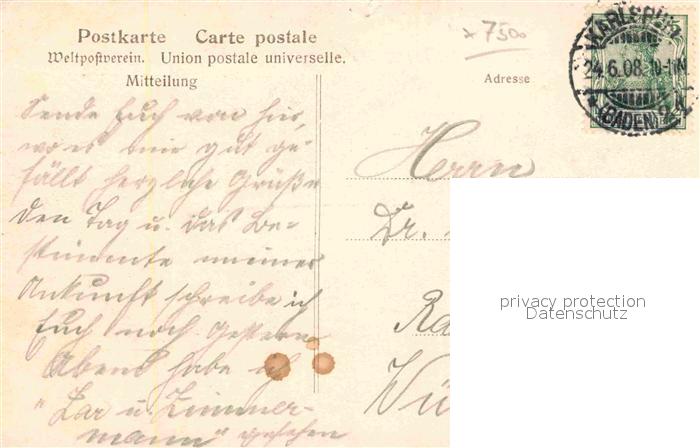 42842918 alte Postkarte Karlsruhe Baden Marktplatz postalisch gelaufen Erhaltung siehe scans [WerneD78] KatCode: 11110008212000
