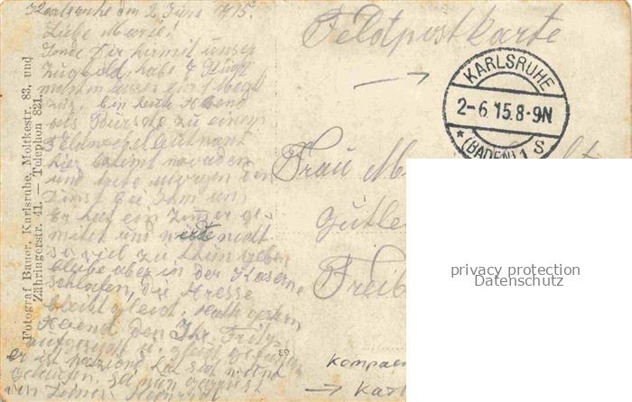 74011447 alte Postkarte KARLSRUHE Baden Militaer Soldaten Gruppenbild Feldpost postalisch gelaufen Erhaltung siehe scans [FriedD77] KatCode: 11110008212000