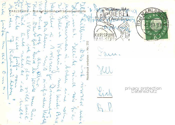 72654321 alte Postkarte Karlsruhe Baden Panorama mit Schwarzwaldhalle postalisch gelaufen Erhaltung siehe scans [WerneD78] KatCode: 11110008212000