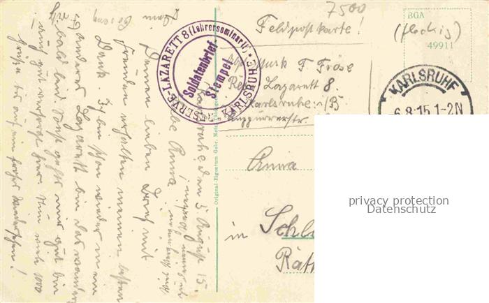 74021477 alte Postkarte KARLSRUHE Baden Partie beim Kaiser Wilhelm Denkmal postalisch gelaufen Feldpost – Stempel Erhaltung siehe scans [WerneD78] KatCode: 11110008212000