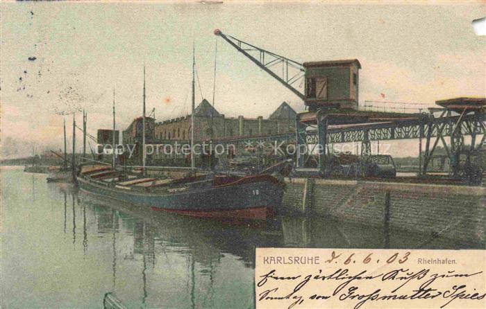 74101971 alte Postkarte KARLSRUHE Baden Rheinhafen Frachtkahn postalisch gelaufen Erhaltung siehe scans [FriedD77] KatCode: 11110008212000