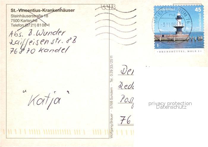 72931554 alte Postkarte Karlsruhe Baden Sankt Vincentius Krankenhaeuser postalisch gelaufen Erhaltung siehe scans [KathaD81] KatCode: 11110008212000