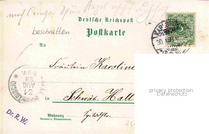 42889404 alte Postkarte Karlsruhe Baden Schloss Marktplatz Kaiserstrasse postalisch gelaufen Erhaltung siehe scans [NatalD47] KatCode: 11110008212000