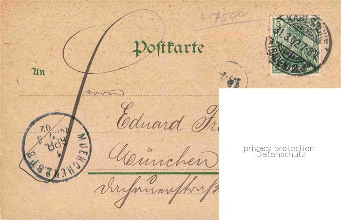 42886988 alte Postkarte Karlsruhe Baden Schloss Schlossgartensee Schlossturm postalisch gelaufen Erhaltung siehe scans [NatalD47] KatCode: 11110008212000