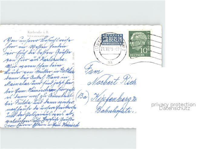 72299897 alte Postkarte Karlsruhe Baden Schwarzwaldhalle postalisch gelaufen Erhaltung siehe scans KatCode: 11110008212000