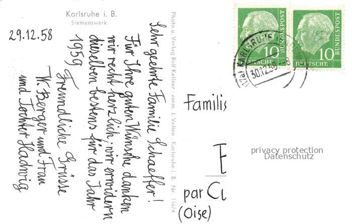 KARLSRUHE Baden Siemenswerk postalisch gelaufen Erhaltung siehe scans [FriedD77] alte Postkarte Frie Katcode 11110008212000