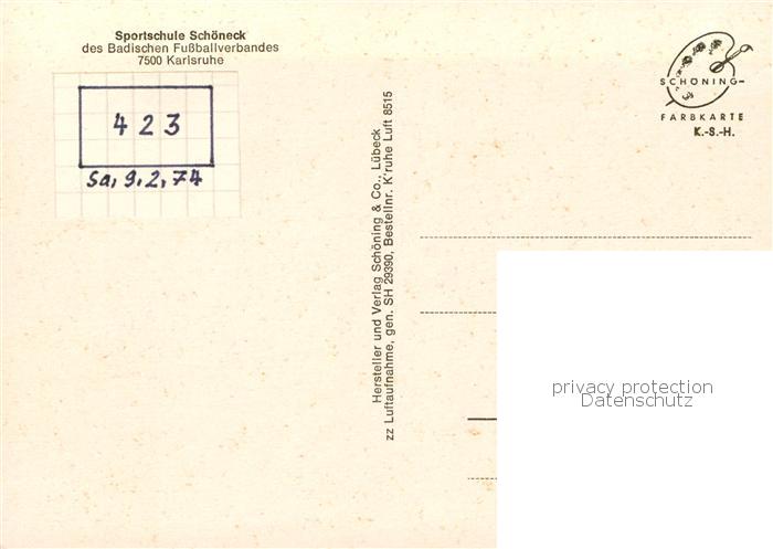 73837490 Karlsruhe Baden Sportschule Schoeneck das Bad Fussballverbandes Fliegeraufnahme postalisch nicht gelaufen Erhaltung siehe scans [FriedD77] KatCode: 11110008212000