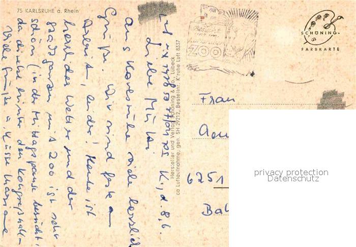 72878700 alte Postkarte Karlsruhe Baden Stadtbild mit Schloss Fliegeraufnahme postalisch gelaufen Erhaltung siehe scans [FriedD77] KatCode: 11110008212000