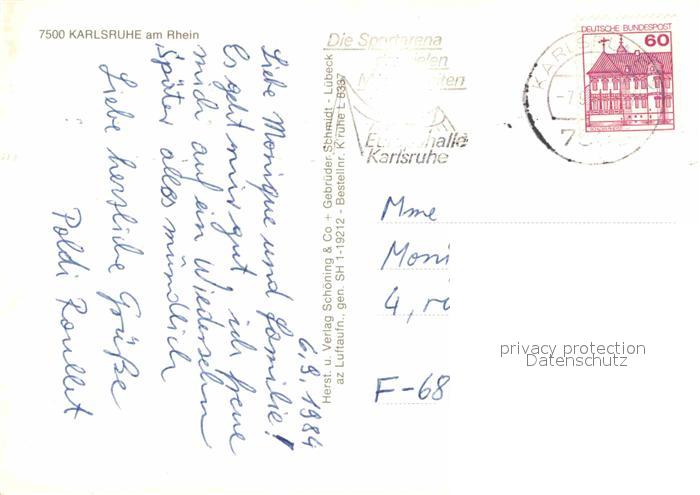 72899534 alte Postkarte Karlsruhe Baden Stadtbild mit Schloss Fliegeraufnahme postalisch gelaufen Erhaltung siehe scans [FriedD77] KatCode: 11110008212000