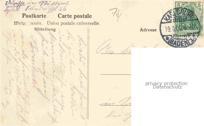 74120687 alte Postkarte KARLSRUHE Baden Stefansplatz mit Brunnen postalisch gelaufen Erhaltung siehe scans [FriedD77] KatCode: 11110008212000