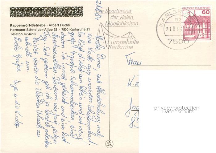 73784532 alte Postkarte Karlsruhe Baden Strandbad Rappenwoerth Liegewiese Restaurant postalisch gelaufen Erhaltung siehe scans [FriedD77] KatCode: 11110008212000