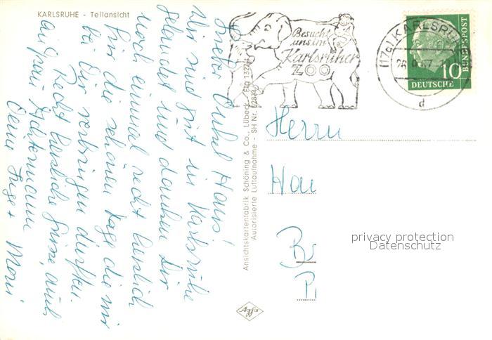 73159051 alte Postkarte Karlsruhe Baden Teilansicht Fliegeraufnahme postalisch gelaufen Erhaltung siehe scans [PaolaD17] KatCode: 11110008212000