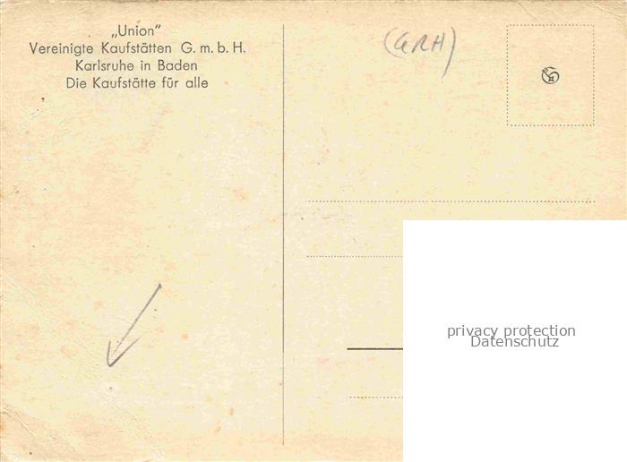 74028325 KARLSRUHE Baden Union Vereinigte Kaufstaetten postalisch nicht gelaufen Erhaltung siehe scans [WerneD78] KatCode: 11110008212000