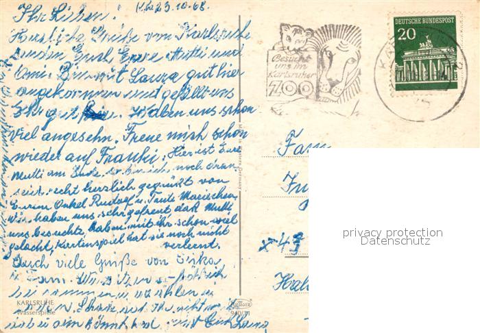 73159062 alte Postkarte Karlsruhe Baden Wasserspiele postalisch gelaufen Erhaltung siehe scans [PaolaD17] KatCode: 11110008212000