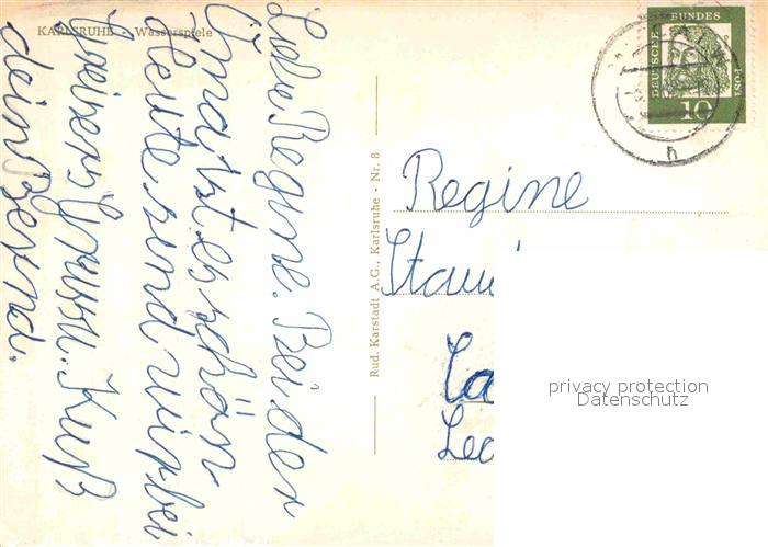 72772199 alte Postkarte Karlsruhe Baden Wasserspiele postalisch gelaufen Erhaltung siehe scans [AndreD76] KatCode: 11110008212000