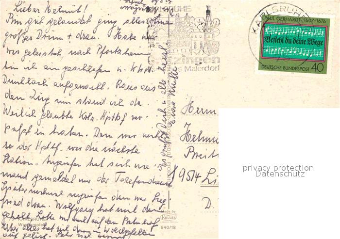 72617398 alte Postkarte Karlsruhe Baden Wasserspiele postalisch gelaufen Erhaltung siehe scans [WerneD78] KatCode: 11110008212000
