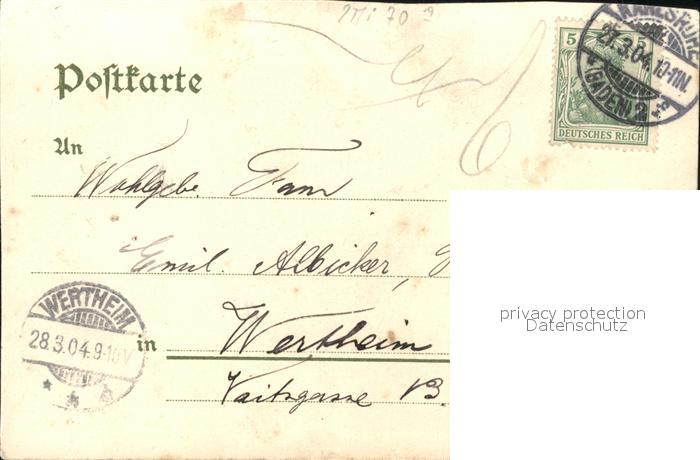 31722708 alte Postkarte Karlsruhe Baden zum Moninger postalisch gelaufen Erhaltung siehe scans KatCode: 11110008212000
