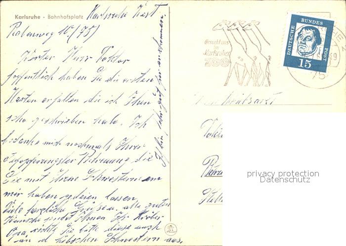 72133124 alte Postkarte Karlsruhe Bahnhofsplatz postalisch gelaufen Erhaltung siehe scans KatCode: 11110008212000
