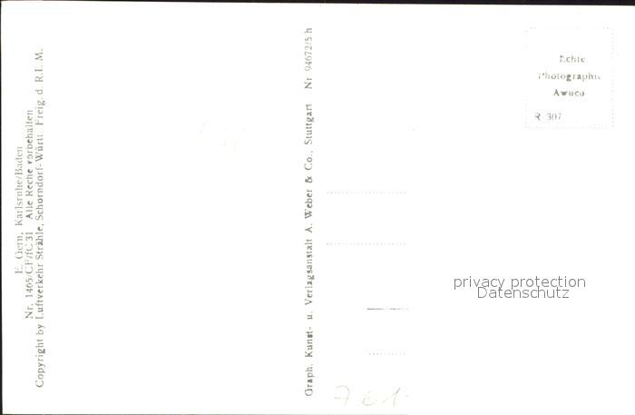 31910325 Karlsruhe Fliegeraufnahme postalisch nicht gelaufen Erhaltung siehe scans KatCode: 11110008212000