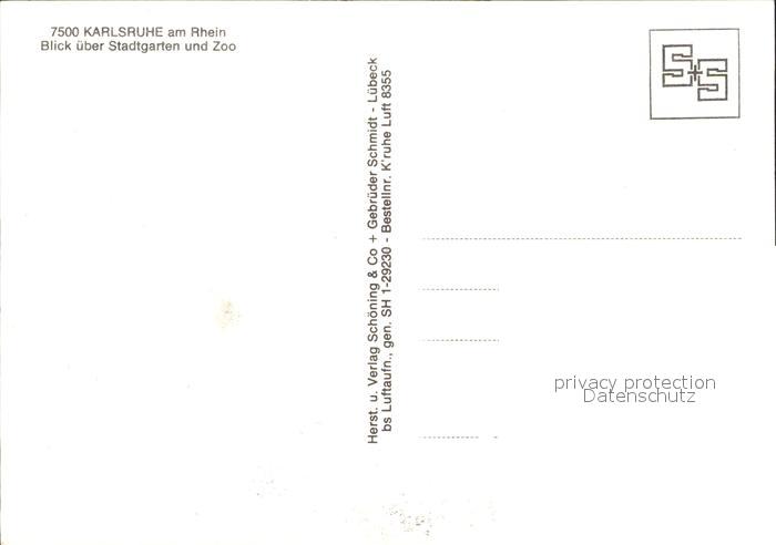 71988131 Karlsruhe Fliegeraufnahme Stadtgarten und Zoo postalisch nicht gelaufen Erhaltung siehe scans KatCode: 11110008212000