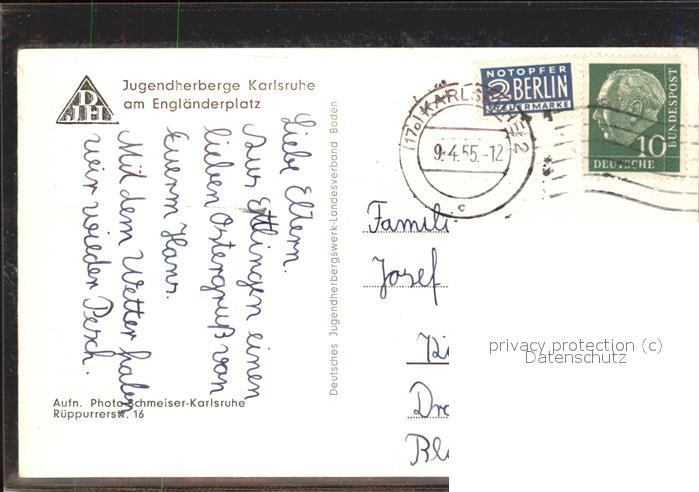 41480747 Karlsruhe Jugendherberge am Engländerplatz KatCode 11110008212000