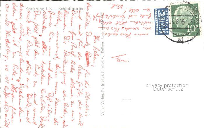72194601 alte Postkarte Karlsruhe Schlossgarten Fontaene postalisch gelaufen Erhaltung siehe scans KatCode: 11110008212000